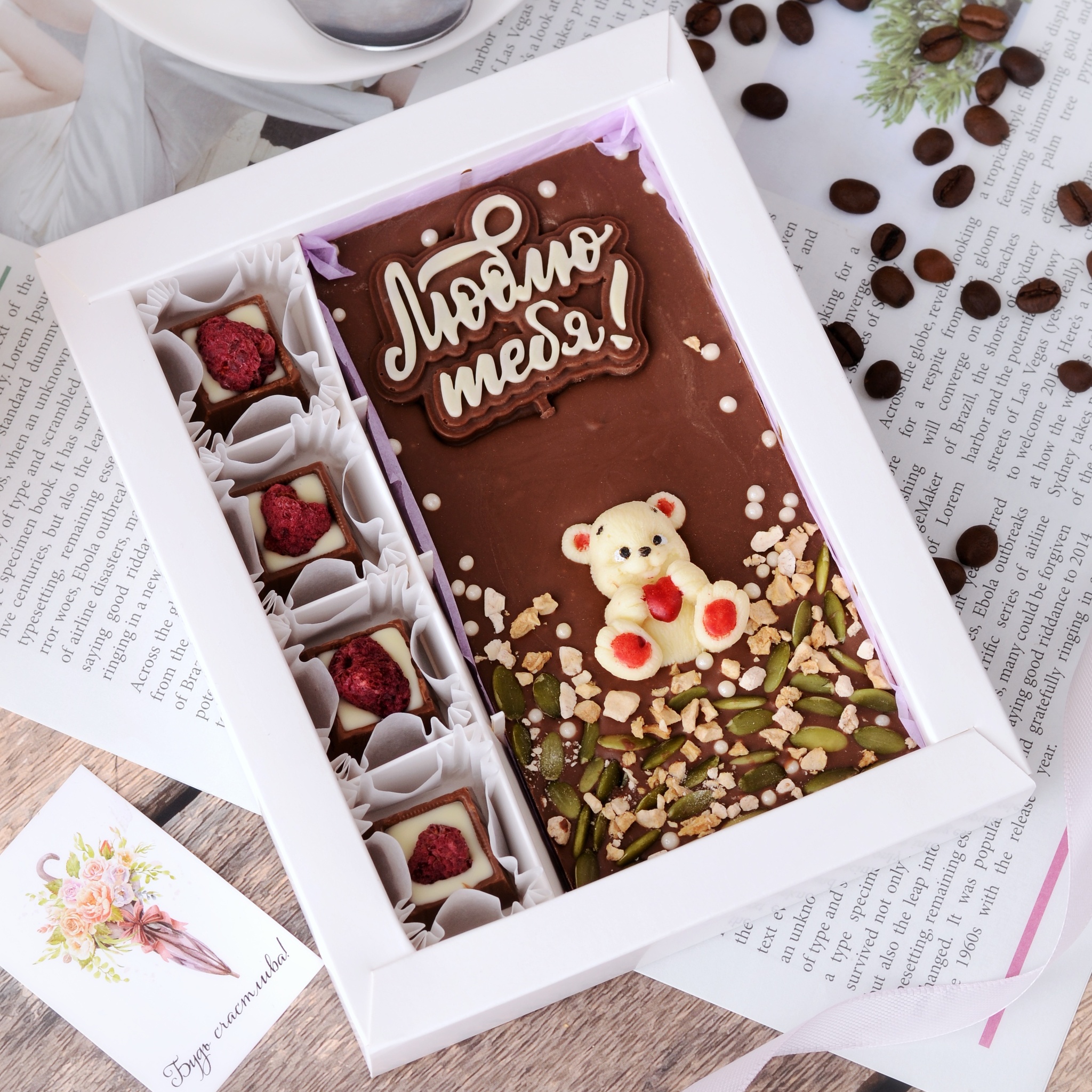 Набор конфет из шоколада ручной работы "Люблю тебя" — идеальный подарок для тех, кто хочет выразить свои чувства и сделать особенный сюрприз. Этот набор станет прекрасным подарком на день рождения для любимой, девушки, жены или подруги, а также доставит удовольствие любимому или мужу. Вес изделия ≈ 235 грамм. Вид и упаковка товара могут незначительно отличаться от изображения на фото.