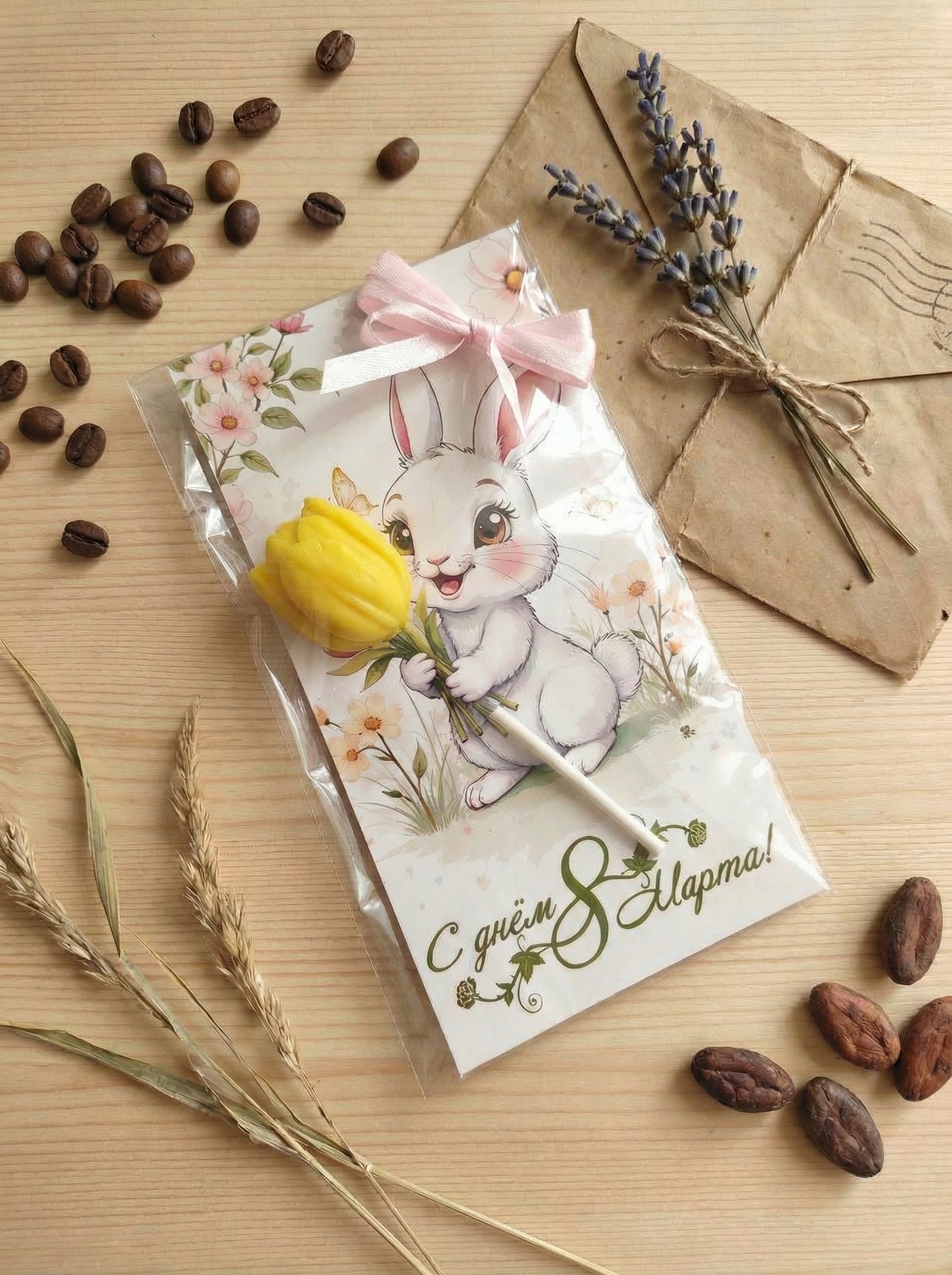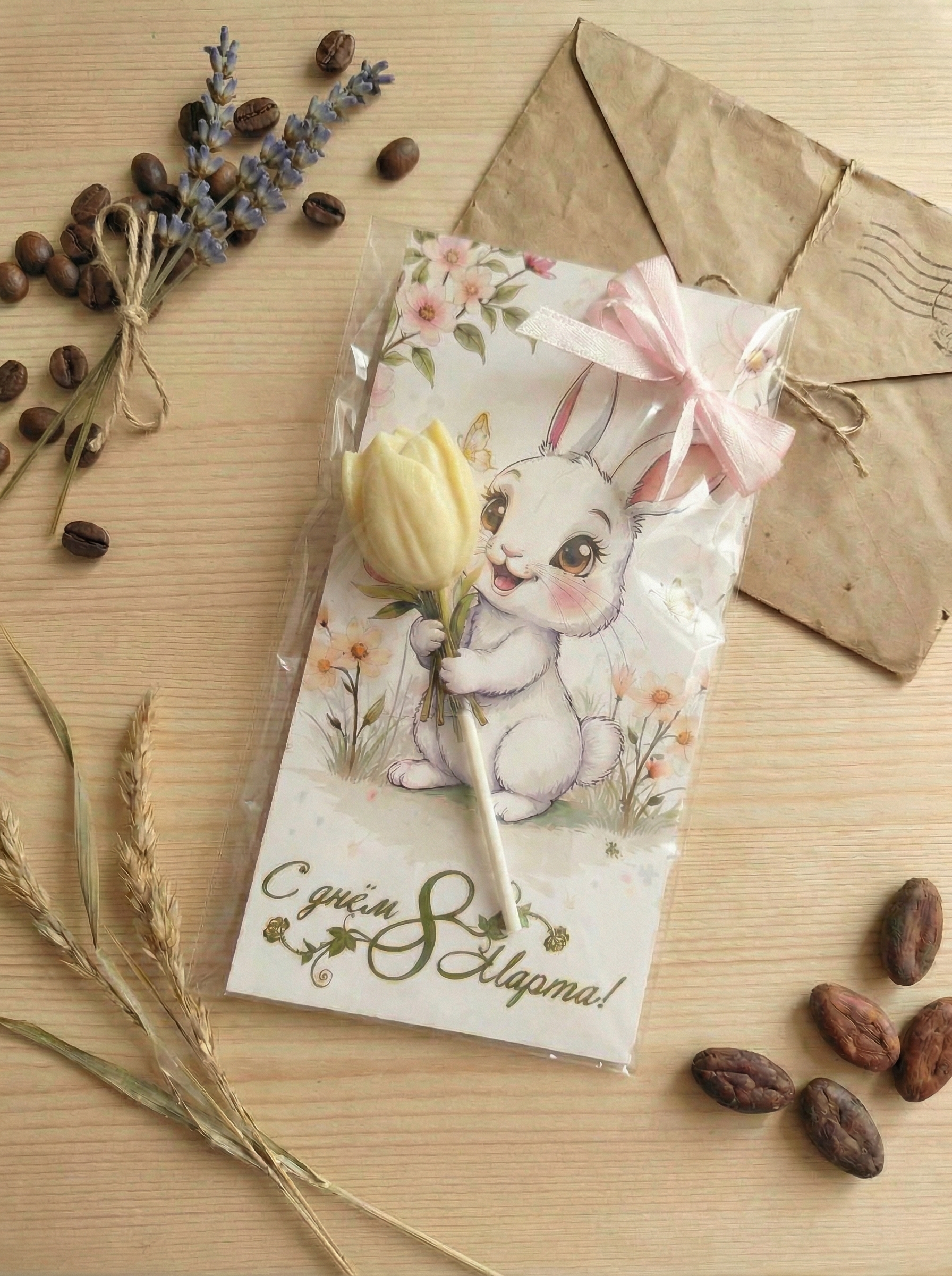 Открытка "Зайка с тюльпаном" – купить за 190 ₽ | ШокоЛайзер